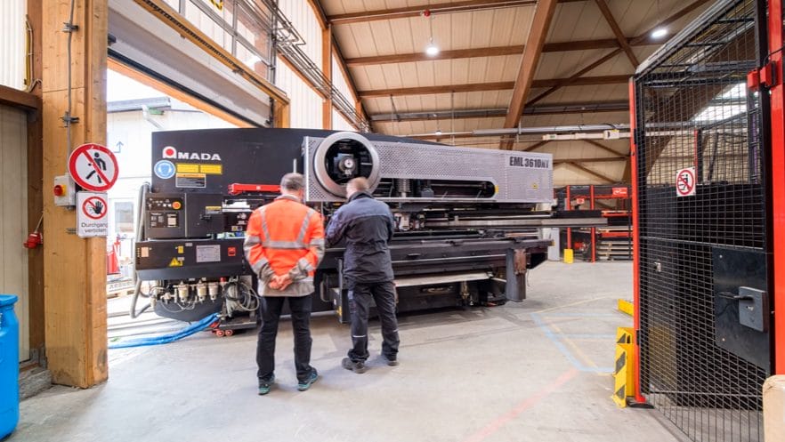 Ein Feuer verursachte einen Brandschaden an der 21 Tonnen schweren AMADA-Maschine, der zum Totalausfall führte. Vor Ort war die Sanierung nicht möglich. Die Lieferzeit für eine neue Maschine betrug mindestens 1,5 Jahre.